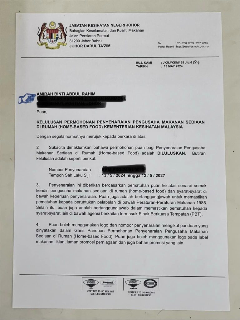Kelulusan Dari Kementerian Kesihatan Malaysia
