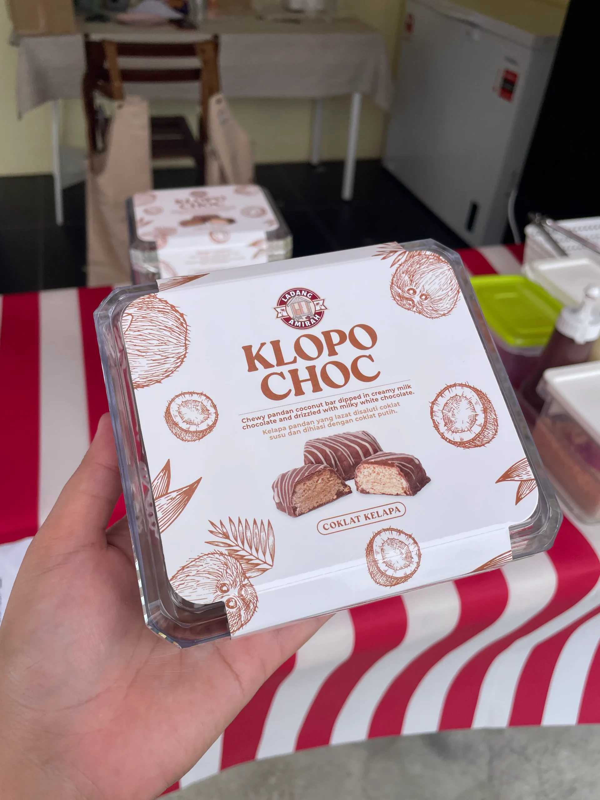 Milk Chocolate berintikan isi kelapa segar yang lemak manis dan wangi.